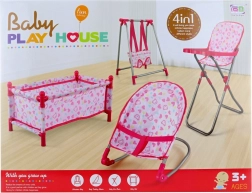 Il set per bambola 4 in 1 include sdraietta, altalena, seggiolone e lettino. Dimensioni della confezione circa 37 x 47,5 x 10 cm. Età 3+