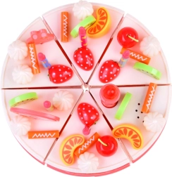 Le singole parti della torta sono unite con velcro, permettendo ai bambini di assemblare la torta secondo la loro immaginazione.
