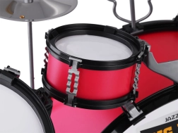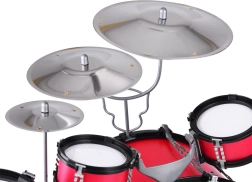 Il set assemblato raggiunge un'altezza di 59 cm e una larghezza di 77 cm. Il grande tamburo ha un diametro di 39 cm, mentre il tamburo medio ha un diametro di 20 cm. I piatti sono in alluminio, il che garantisce un suono realistico.