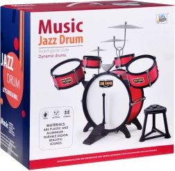 Il set include tutto il necessario - tamburi, piatti e sgabello, così i bambini possono iniziare a suonare subito.
