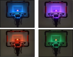 Il divertimento inizia dopo una semplice impostazione e installazione delle batterie necessarie (3 x AA, non incluse). La lavagna offre diverse retroilluminazioni colorate e regolazione del volume. Il gioco può essere svolto in una delle tre modalità: solitario, per due o a tempo. Dopo il gioco, puoi riporre la palla nello speciale supporto sotto il canestro.