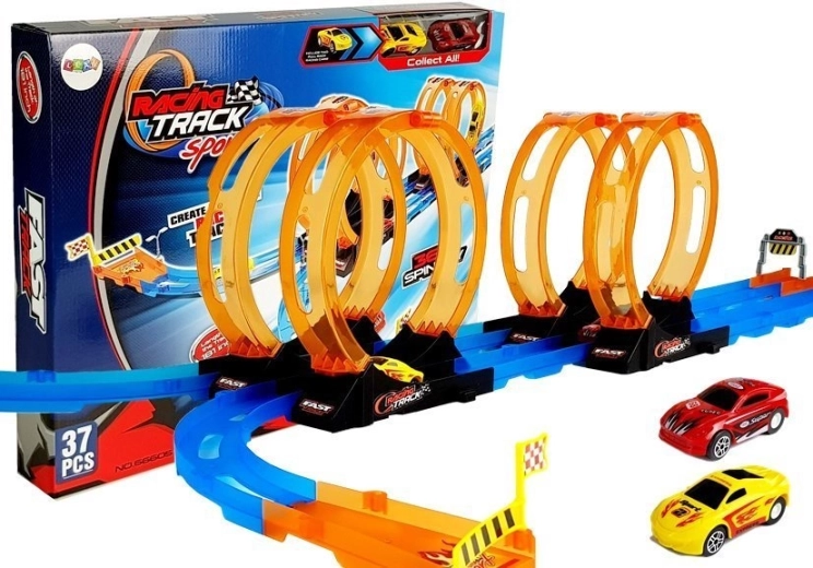 Il set include 37 pezzi compresi adesivi, segnalazioni di partenza e arrivo e due macchinine. Grazie al sistema di collegamento intuitivo, l’assemblaggio è semplice e i bambini sviluppano abilità manuali e immaginazione spaziale. I colori vivaci della pista aumentano la chiarezza e l’attrattiva del gioco.