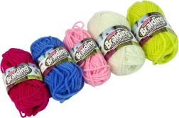 .- 5 colori di mouliné: bianco, giallo, rosa scuro, rosa chiaro, blu
