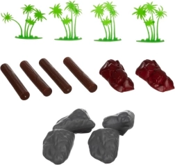 • 14 accessori tematici – pietre, rocce, palme, tronchi