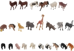 • figure piccole: cavallo, asino, maiale, mucca, pecora, cane, gatto, lepre, gallina, anatra, toro, camoscio, 2× leone, giraffa, elefante, zebra, gorilla, orso polare, tigre, ippopotamo, rinoceronte, leonessa, canguro
