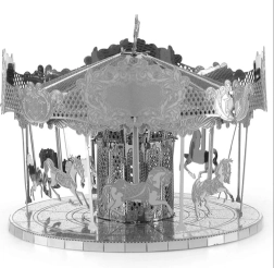 Scopri il fascino dei luna park classici in versione miniatura. Il modello di giostra della serie METAL EARTH è realizzato con precisione da fogli d'acciaio con fine incisione laser, che dona dettagli realistici ai cavallini, al tetto e ai pannelli decorativi. Il montaggio richiede pazienza e manualità, ma la ricompensa è una marcata decorazione di design che spicca sia su una mensola sia sulla scrivania.