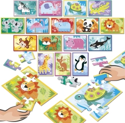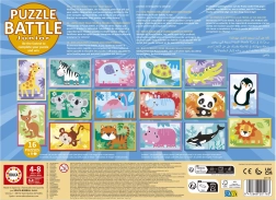 Una sfida puzzle divertente e avvincente per bambini e adulti! Educa puzzle battaglia Animaletti unisce il classico assemblaggio al duello di velocità, che mette alla prova riflessi e concentrazione. Nella confezione trovi 16 mini puzzle da 9 pezzi e 16 carte modello – ideale per tornei in famiglia e per allenare coordinazione occhio-mano, pazienza e capacità di osservazione.