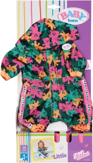 Questa tuta colorata per la bambola BABY BORN da 36 cm è progettata per essere comoda da indossare e perfetta per il gioco quotidiano. Grazie al taglio easy fit e alla zip frontale, i bambini possono vestirla in autonomia. Non mancano cappuccio, polsini elastici e stivaletti di gomma coordinati che mantengono i piedini della bambola asciutti.