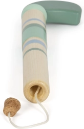 Questa pistola a tappo in legno, ben rifinita, unisce un aspetto naturale a colori delicati e invita al gioco attivo in casa e all'aperto. Grazie al tappo di sughero fissato con un cordino non si perde nulla e i bambini possono allenare precisione e prontezza all'infinito.