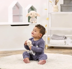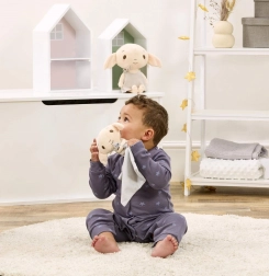La copertina coccolosa Dobby è un tenero compagno ispirato al mondo di Harry Potter. La copertina grigia con scritte e stelline colpisce a prima vista, mentre il corpicino morbidissimo con grandi orecchie e cuciture di qualità assicura abbracci sicuri e piacevoli per ogni bebè.