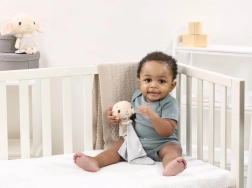 Il tessuto testurizzato e i dettagli ricamati incoraggiano la percezione tattile e la curiosità dei più piccoli.