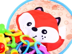 Il mini tappetino frusciante e i sonagli colorati sviluppano vista, udito e tatto e favoriscono la coordinazione delle mani.