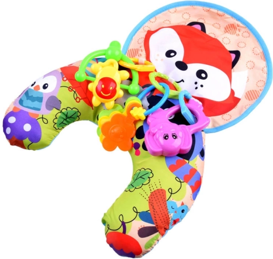 Questo rullo multiuso per bambini è un ottimo aiuto a casa e in viaggio. Durante il tummy time il bebè ha davanti a sé giochini fissati che lo motivano ad allungarsi e ad alzare la testa, rinforzando in modo naturale i muscoli della schiena e del collo. Il mini tappetino frusciante e i sonagli colorati favoriscono il sviluppo sensoriale e allenano la motricità fine.