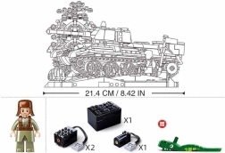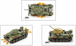 Il modello di carro armato Sluban T34/76 offre ai bambini un divertimento unico combinato con la possibilità di sviluppare abilità tecniche. Grazie al telecomando, il carro può muoversi avanti, indietro, ruotare di 360 gradi e la torretta si gira anch'essa di 360 gradi. Il set include:
