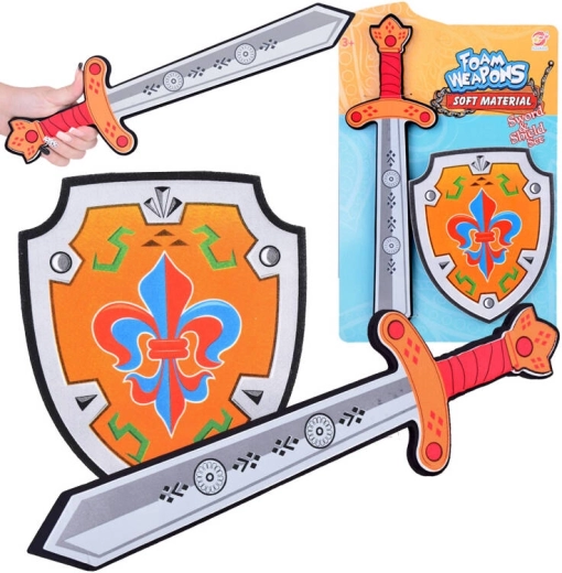 Set cavalleresco in schiuma: spada e scudo con giglio