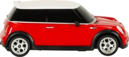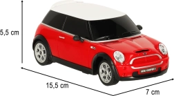 Mini Cooper S in scala 1:24 è una fedele replica dell’iconica vettura con vernice rossa brillante e tetto bianco a contrasto. Questo modello colpisce non solo per la realizzazione dettagliata, ma anche per l’aspetto autentico, inclusi fari e specchietti realistici.