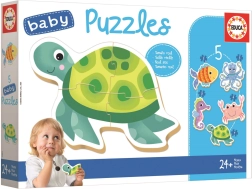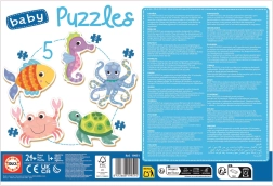 I baby puzzle EDUCA Animali marini 5in1 sono progettati appositamente per i più piccoli. Favoriscono lo sviluppo psicomotorio, la coordinazione occhio–mano e anche la pazienza e il ragionamento logico. L'immagine assemblata misura circa 15 × 15 cm, dimensione ideale per le piccole mani e per i primi successi.