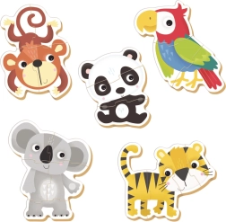 Scopri divertenti baby puzzle sagomati per i più piccoli dai 24 mesi. La confezione include 5 puzzle progressivi con motivi di animali selvatici (3–5 pezzi). Pezzi grandi e robusti facili da afferrare, che favoriscono motricità fine, attenzione e immaginazione.