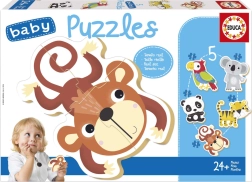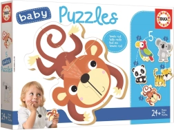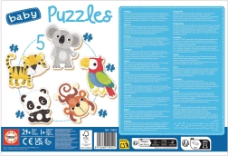 Educa baby puzzle Animali selvatici 5in1 sono progettati appositamente per i bambini che iniziano a scoprire i puzzle. Grazie al numero di pezzi che aumenta gradualmente (da 3 a 5), i bambini sviluppano in modo giocoso sicurezza e pazienza. I pezzi grandi e spessi sono facili da prendere e si incastrano con precisione.