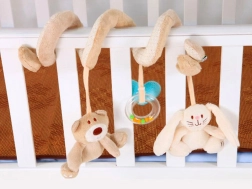 Ciascuno dei giocattoli sulla spirale è progettato per stimolare i sensi e aiutare nello sviluppo delle capacità motorie dei bambini. L'orsacchiotto, il coniglio e il sonaglio con perline invitano al gioco e all'esplorazione.