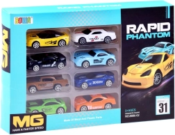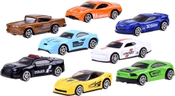 Il set include 8 macchinine con colori e stili diversi – dai modelli da corsa ai motivi della polizia. Un’ottima varietà per competere e collezionare.