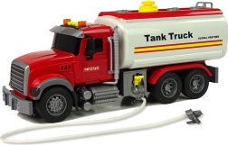 Altre funzioni, come effetti sonori e luminosi, aggiungono effetto e realismo al divertimento. Le sirene di allarme sulla parte superiore segnalano il movimento; i pulsanti superiori sono responsabili dei suoni: clacson, avviamento del motore, retromarcia. Grazie alla colorazione bianca e rossa, il veicolo è visibile anche da lontano. La cisterna ha una trazione a frizione sull’assale posteriore push-pull: basta premere sulla parte posteriore, rilasciare in avanti e godersi la velocità.