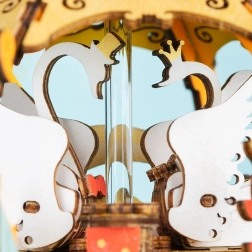 Entra in una fiaba con il dettagliato puzzle 3D del carillon RoboTime – carrozza di zucca con due cigni. Questo originale kit in legno offre dettagli mobili, un carillon a carica da 18 note con componenti giapponesi e la melodia Born Free. Ha una difficoltà media e, una volta assemblato, diventa un elemento decorativo per ogni mensola.