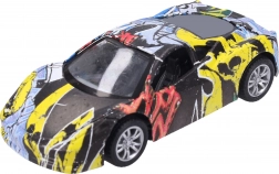 Elegante macchinina in metallo con originale design graffiti, perfetta per piccoli e grandi collezionisti. La dimensione compatta di 9 cm, la retrocarica e 3 varianti la rendono una scelta ideale per il gioco e la collezione.
