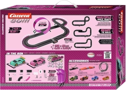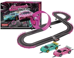 Scopri il divertimento con questo set da corsa di alta qualità Carrera GO!!! Glamour Racing. Il set include due auto con una splendida brillantezza metallica e controller in colori unici. La pista è lunga 4,9m e include vari elementi decorativi e parti per la costruzione del tracciato.