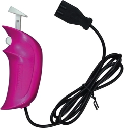 Controller di plastica rosa con cavo nero e pulsante per un controllo preciso della velocità.