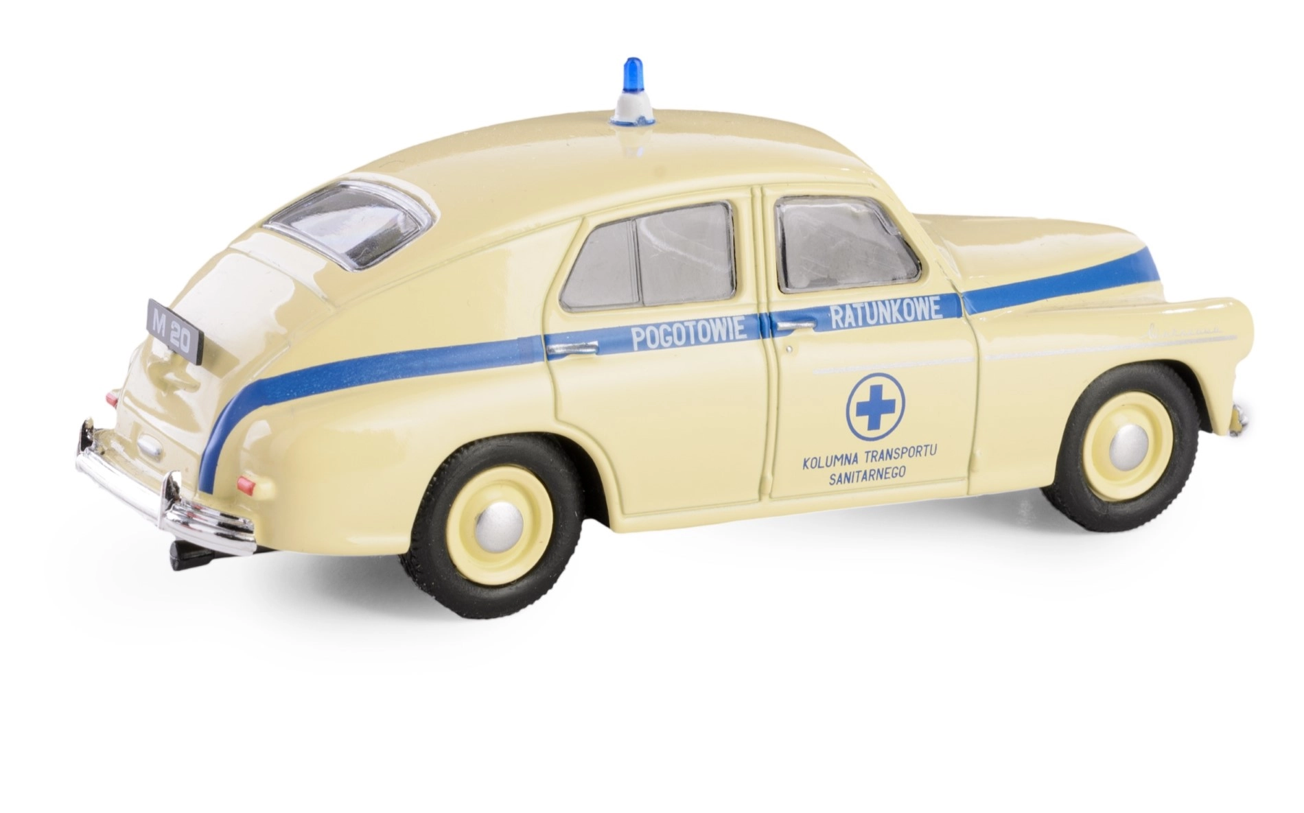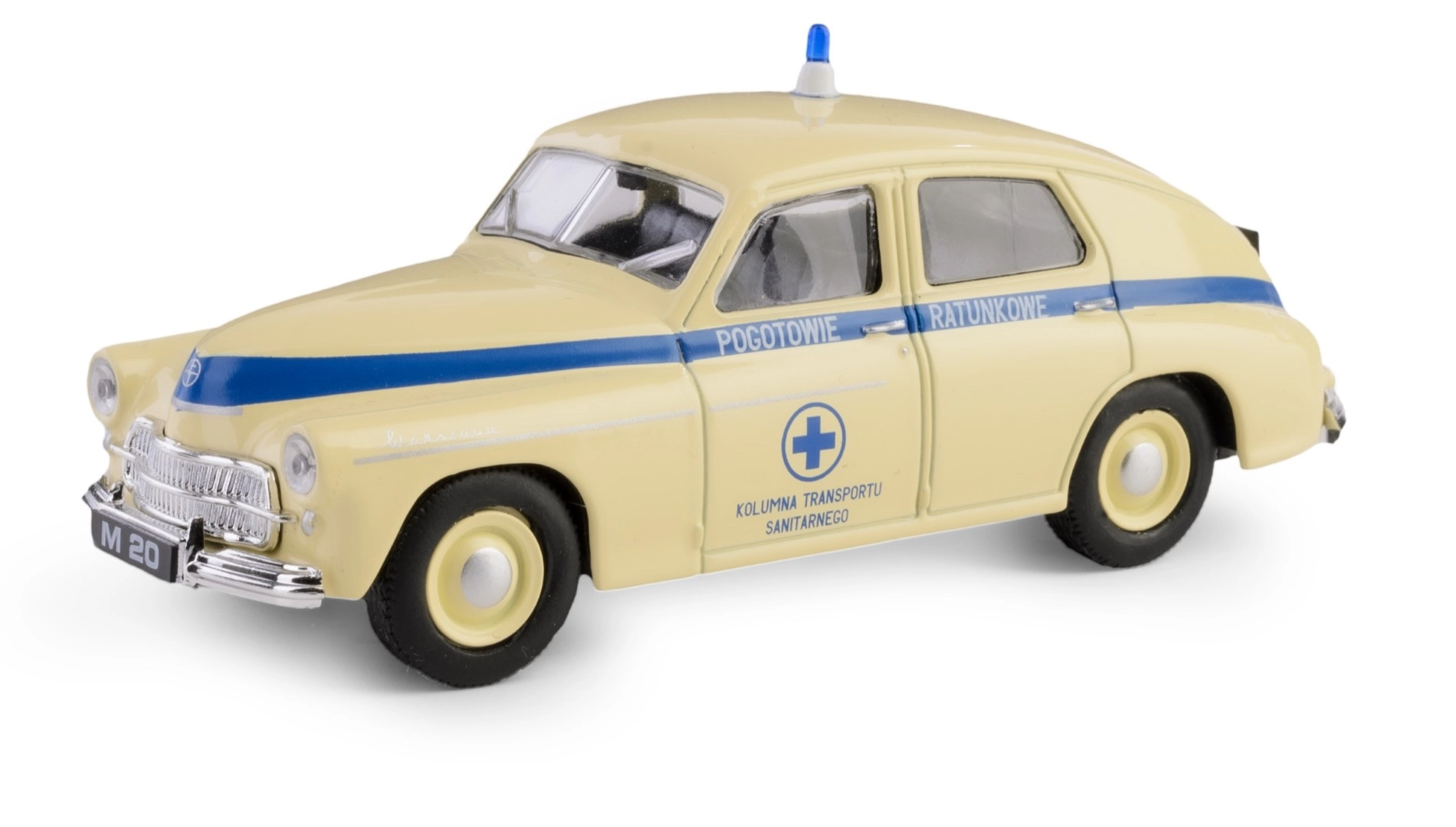 Scopri l’iconica auto storica dell’epoca PRL: la versione ambulanza della Warszawa in scala 1:43. Questo modello dettagliato combina una solida carrozzeria in metallo con precisi elementi in plastica e riproduce fedelmente il carattere della leggendaria vettura.