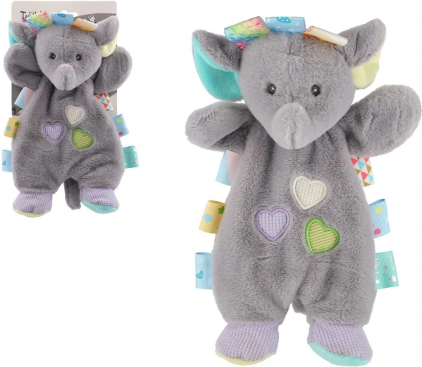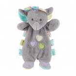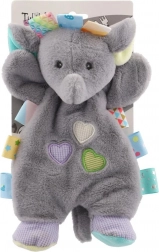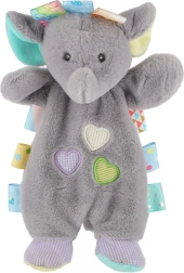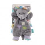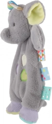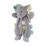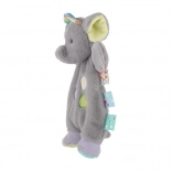 Questo morbido doudou a forma di elefantino unisce comfort e gioco stimolante. Il peluche soffice, i dettagli pastello e le etichette multicolori sui bordi invitano ad afferrare e manipolare, sostenendo la motricità fine e lo sviluppo sensoriale fin dalla nascita.