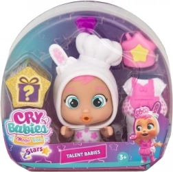 Scopri Coney dalla collezione Cry Babies Magic Tears Stars Talent: una piccola pasticciera con morbido outfit in silicone con cappuccio e orecchiette da coniglio. Grazie alla maggiore mobilità delle articolazioni puoi farla sedere, stare in piedi e coinvolgerla in scenari di gioco creativi con facilità. Dopo aver riempito il biberon con acqua e premuto delicatamente il pancino, la bambola piange vere lacrime, aiutando i bambini a vivere e sviluppare le emozioni.