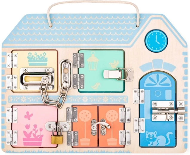 Scoprite un eccellente strumento educativo per i vostri bambini! La tabella motoria con motivo di serrature e sicurezza offre esperienze entusiasmanti e divertenti.
