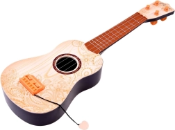 Questa chitarra-giocattolo è pensata per i piccoli musicisti che amano la musica e vogliono provare i primi accordi. Il corpo in plastica con finitura effetto legno naturale ha un aspetto professionale, pur rimanendo leggero e resistente per le mani dei bambini.