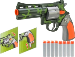 Il set include una pistola compatta con un motivo mimetico, che è comoda da tenere con una mano. I proiettili in schiuma e gomma morbida garantiscono massima sicurezza e leggerezza. Il set include 6 proiettili.