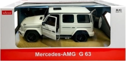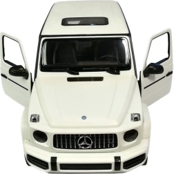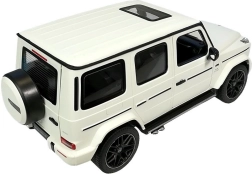 Il giocattolo è confezionato in una scatola elegante con un'ampia finestra trasparente che consente di vedere nei dettagli il contenuto del set. Grazie alla confezione è ideale come regalo. Il veicolo Mercedes G63 R/C bianco richiede 5 batterie AA per il funzionamento e il radiocomando richiede 2 batterie AA (non incluse).