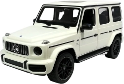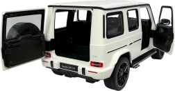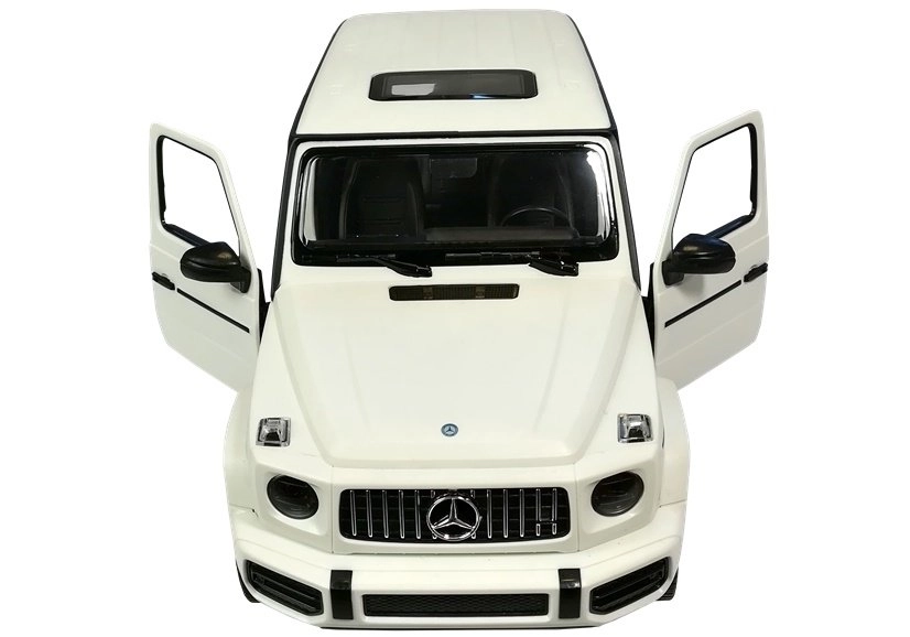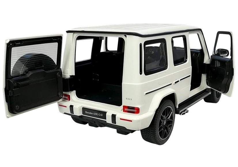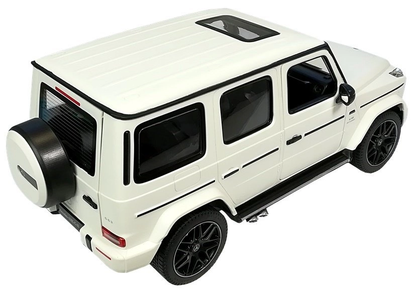 La Mercedes G63 radiocomandata in colore bianco è una replica autentica in scala 1:14. L’auto si muove in avanti, indietro, sterza e frena tramite radiocomando. Grazie al suo carattere fuoristrada può essere utilizzata sia in ambienti interni che esterni. Le luci del veicolo si attivano durante la marcia. Le porte del veicolo si aprono manualmente; gli interni e il telaio sono progettati con grande cura per rispecchiare il veicolo originale. La Mercedes radiocomandata è controllata tramite radiocomando a onde radio e raggiunge una velocità di 7 chilometri orari. Il radiocomando ha una portata di diverse decine di metri e, a differenza dei telecomandi a infrarossi, può essere utilizzato senza problemi all’aperto in pieno sole.