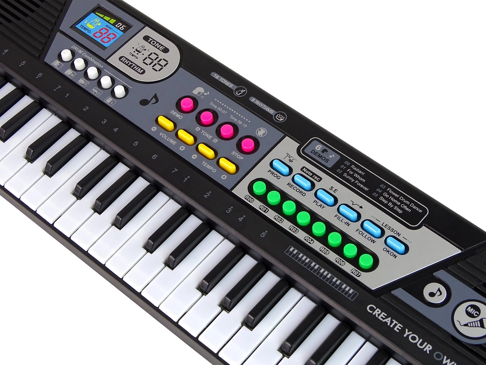 Questa tastiera ha fino a 49 tasti, che consentono un suono facile e naturale. Il microfono integrato permette di cantare le canzoni preferite, il che attirerà sicuramente i bambini che vogliono sperimentare con la voce. I pulsanti sono facili da usare e, grazie al design ergonomico, l’utilizzo del prodotto è molto confortevole. La struttura leggera consente di trasportare il giocattolo e di posizionarlo su un tavolo o una scrivania, così il tuo bambino potrà organizzare le sue esibizioni in qualsiasi angolo della casa. L’ingresso esterno permette di ascoltare i brani preferiti.