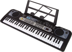 Scoprite il divertente mondo della musica con la tastiera elettronica per bambini in elegante colore nero e microfono incluso. I tasti retroilluminati, la possibilità di regolare volume e tempo e un ricco assortimento di suoni e ritmi la rendono la scelta ideale per i piccoli musicisti principianti. Inclusi leggio, cavo e manuale: tutto il necessario per muovere i primi passi nella musica con facilità.