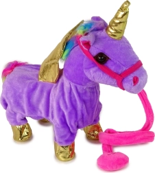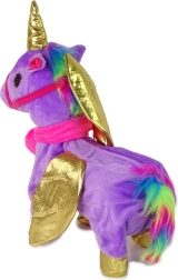 Vuoi che il tuo bambino sappia cosa significa prendersi cura del suo animaletto? Questo unicorno di peluche è la scelta perfetta! Realizzato con la massima cura, viola, morbido e splendidamente decorato con ali dorate. Include funzioni interattive che permettono di nitrire e suonare musica in stile country.