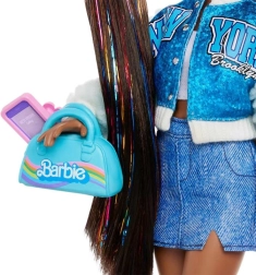 La bambola Barbie Dream Besties "Brooklyn" è pronta a brillare sulla scena della danza. La sua giacca blu scintillante, la gonna di jeans e le eleganti scarpe con tacco creano un audace look newyorkese che stimola l’immaginazione dei bambini. I lunghi capelli scuri con ciocche colorate sono perfetti per pettinare e creare acconciature.