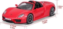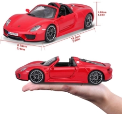 Ogni elemento del modello Bburago Porsche 918 Spyder è realizzato con cura per avvicinarsi il più possibile alla vera auto. Dai fori di ventilazione alle ruote con pneumatici realistici.