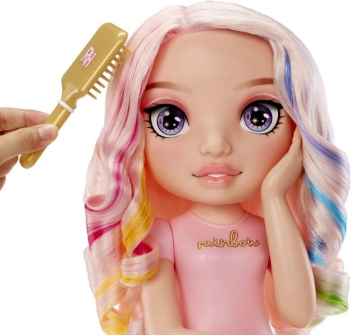 Scopri la nuova testa per pettinare Rainbow High ispirata alla bambola Bella. Perfetto per creare stili unici e decorare capelli e unghie! Comprende strumenti colorati e accessori, con un'altezza di 33 cm.