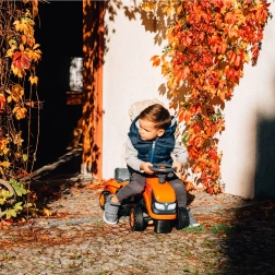 Stimola la fantasia del piccolo contadino con il trattore cavalcabile KUBOTA. La lavorazione accurata, le ruote in plastica di qualità e l'assale anteriore sterzante garantiscono una guida facile e lunga durata. Grazie al rimorchio staccabile i bambini porteranno i loro tesori ovunque.