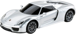 Il modello argento Porsche 918 Spyder replica fedelmente l'aspetto lussuoso dell'auto reale, incluso il design sportivo e i dettagli accurati.