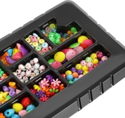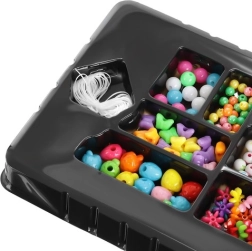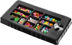 Questo set unico per la creazione di gioielli è la scelta ideale per i bambini che desiderano sviluppare la loro creatività e al contempo divertirsi per ore. Include 11 tipi di perline di diverse forme e colori, insieme a un filo elastico, che consente molte opzioni per la creazione di braccialetti e collane.