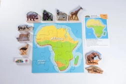 Puzzle in legno Africa e i suoi animali unisce il divertimento e l'istruzione in un unico pacchetto. Aiuta i bambini a scoprire la fauna africana grazie agli animali colorati e in piedi e alla mappa dettagliata.