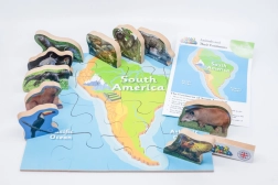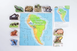 Puzzle in legno America del Sud e i suoi animali rappresenta un divertimento educativo per i bambini, che unisce la scoperta dei continenti e della loro fauna con un approccio ludico all'apprendimento.
