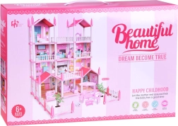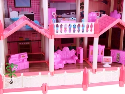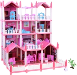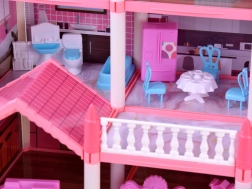 Questa graziosa villa rosa offre ai bambini un grande spazio per la fantasia: 10 stanze dettagliate, balconi e terrazza che invitano a giocare alla casa, all’hotel o alla pensione. Gli elementi strutturali e gli arredi sono in plastica resistente, mentre pareti, pavimenti e tetti sono in cartone con stampa a colori degli ambienti – una volta assemblata, la casa appare molto gradevole e accogliente.